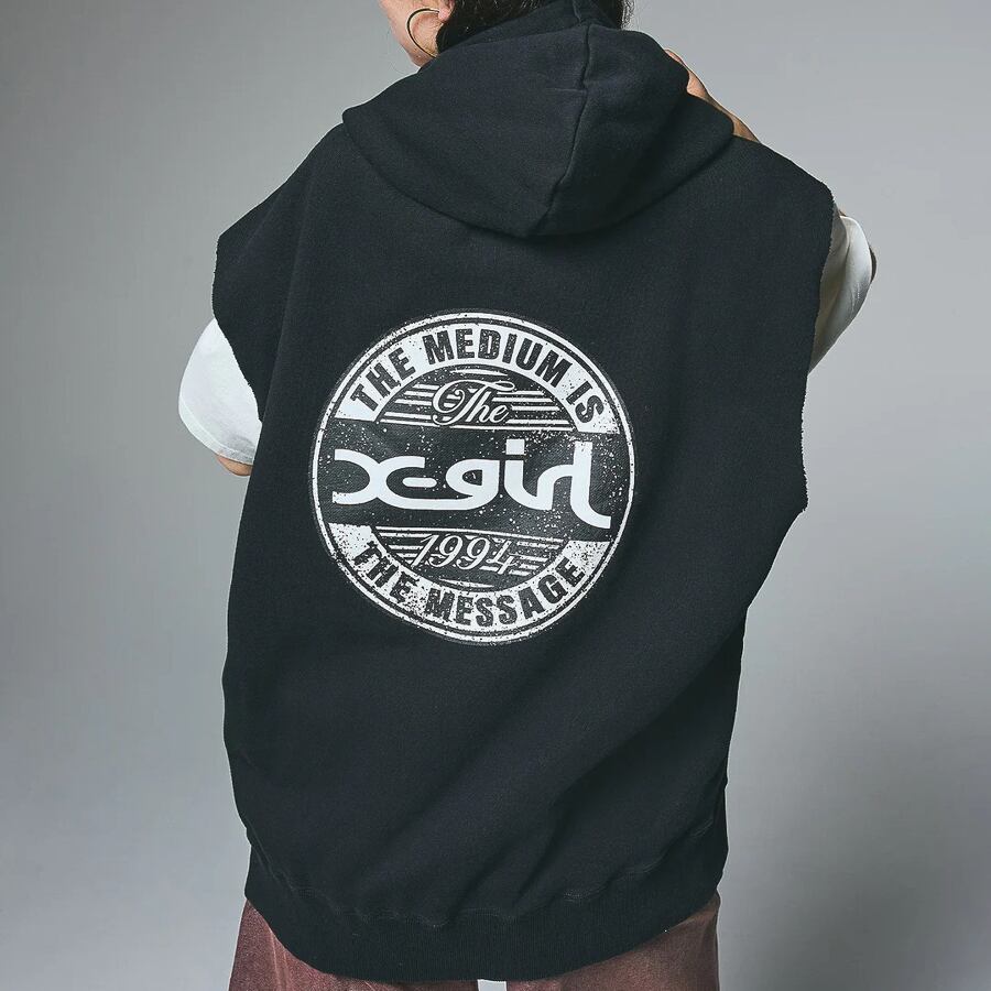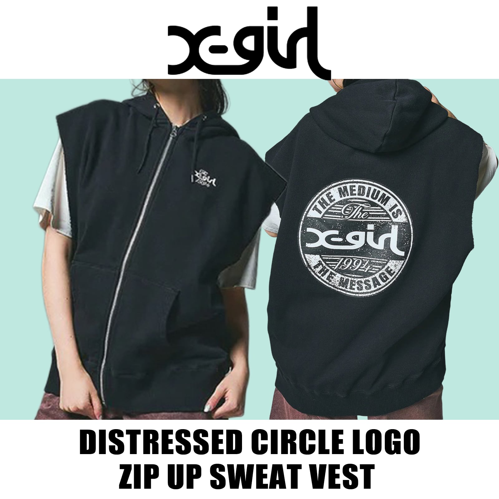x-girl(エックスガール)DISTRESSED CIRCLE LOGO ZIP UP SWEAT VEST 105253021009