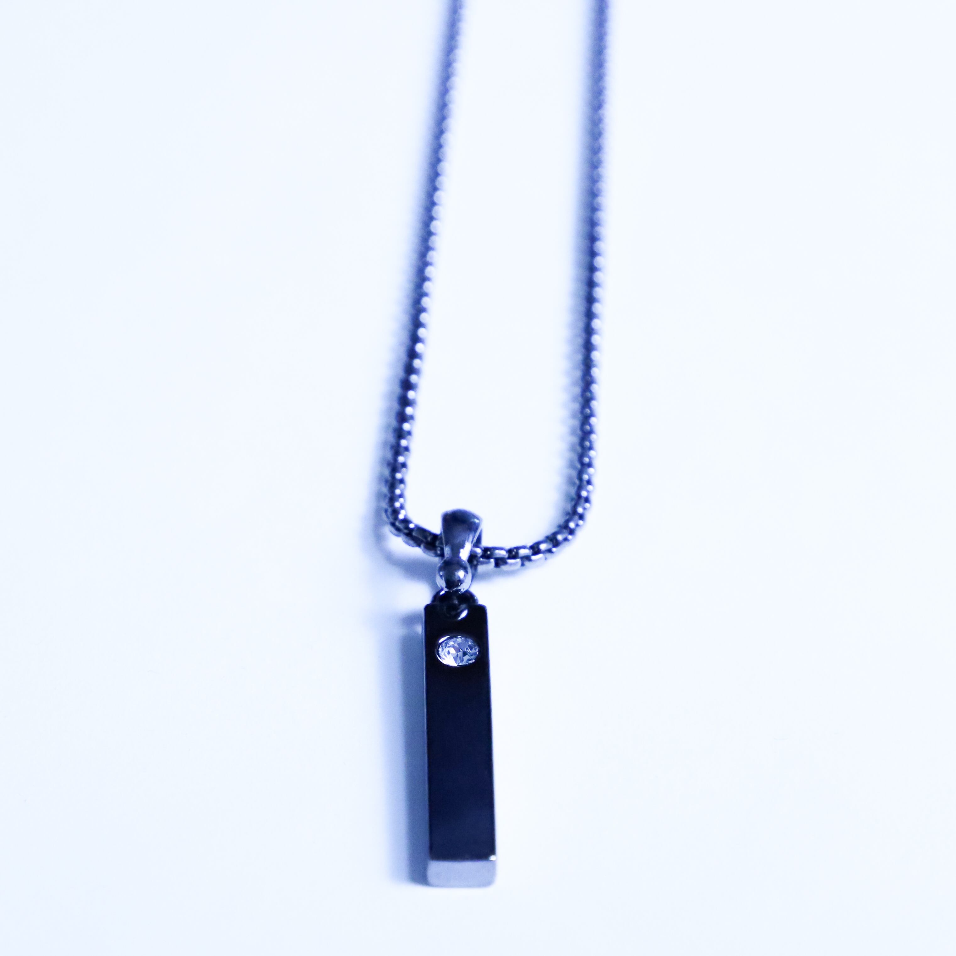 お買得!ネックレス ブラックプレート ストーン付き 約45cm トップ3cm